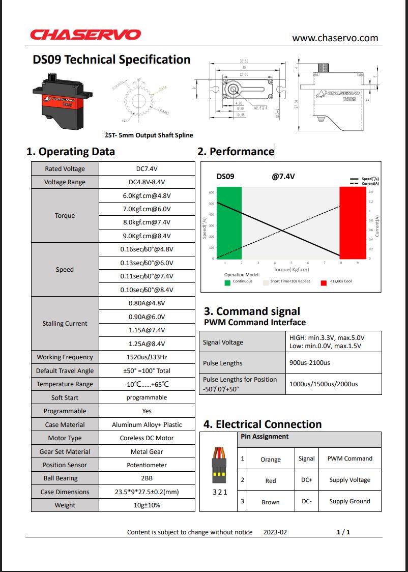 Velocità a vuoto a 7,4 V 0,11 secondi/60°